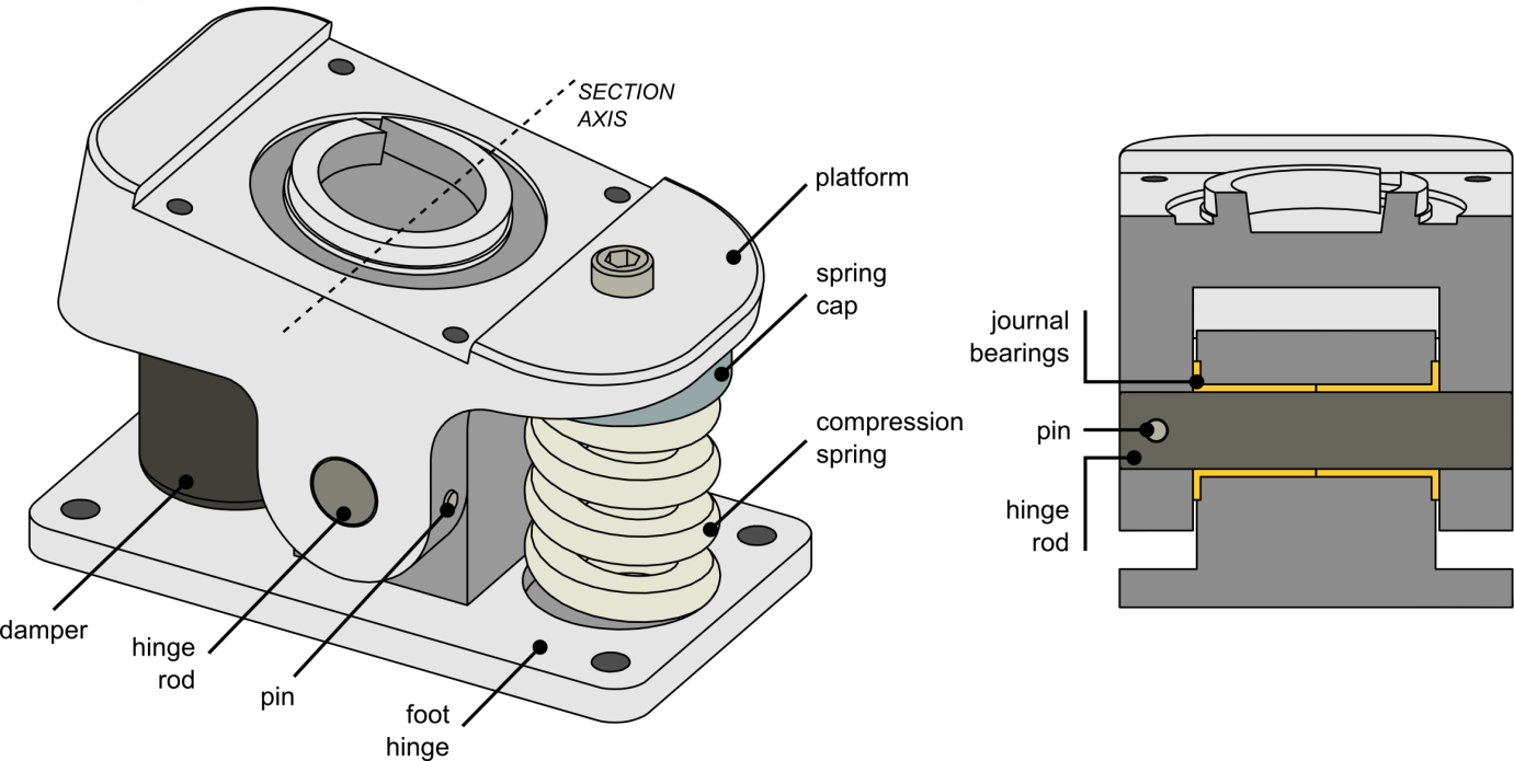 — ran iterative simulations and mechanical reasoning to converge on a controlled DOF design (dorsi/plantar flexion + internal/external rotation).