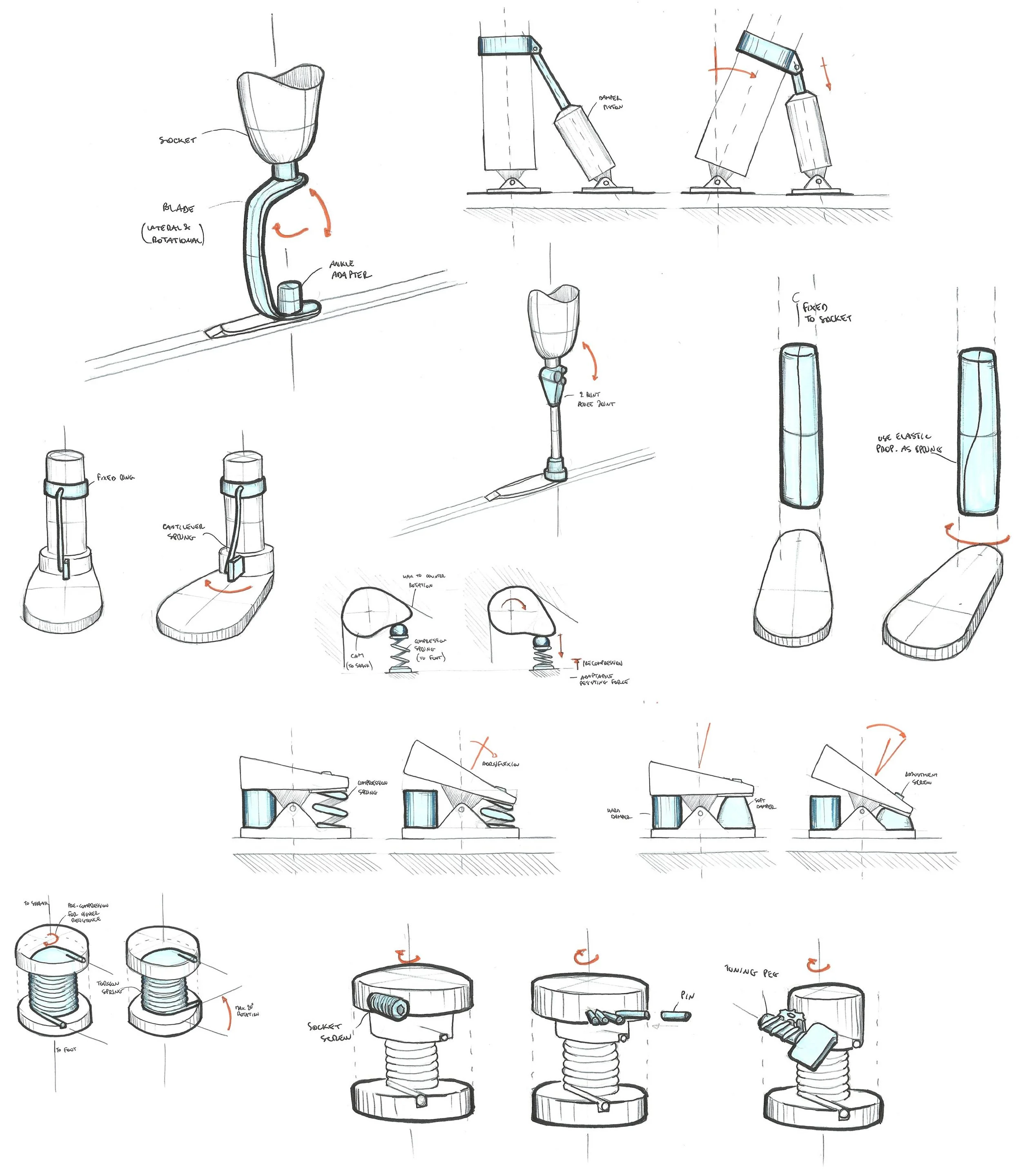 Consulted former Olympic biathlete Mike Dixon and experts at the London Prosthetic Center, and conducted iterative sketching + prototyping to test out various ranges of motions observed in different skiing modes.
