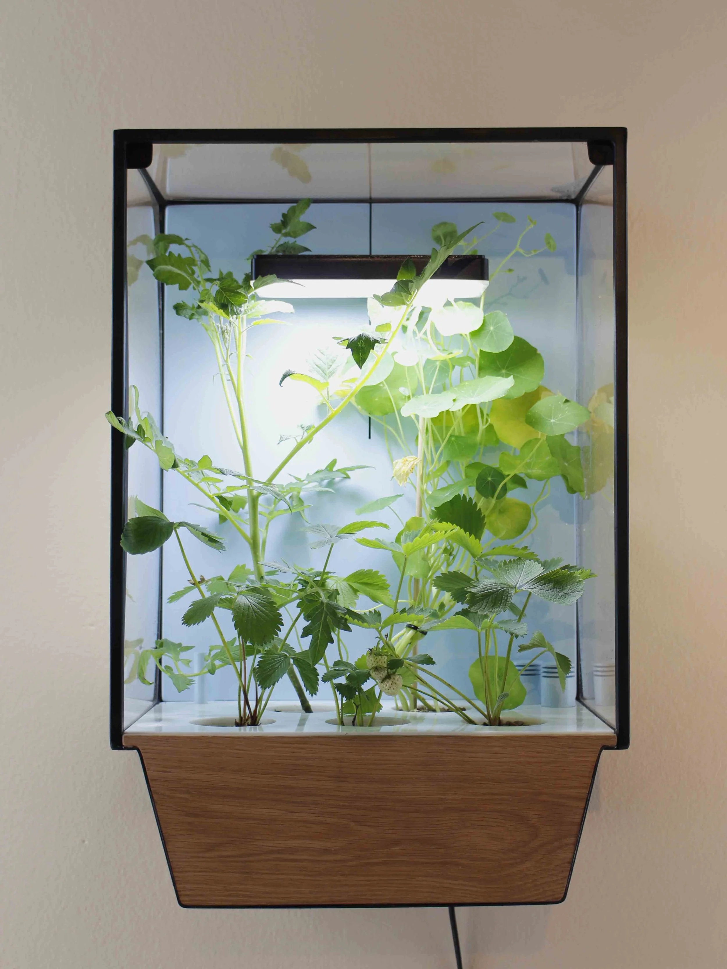 Working prototype integrating hydroponics + controlled environment.